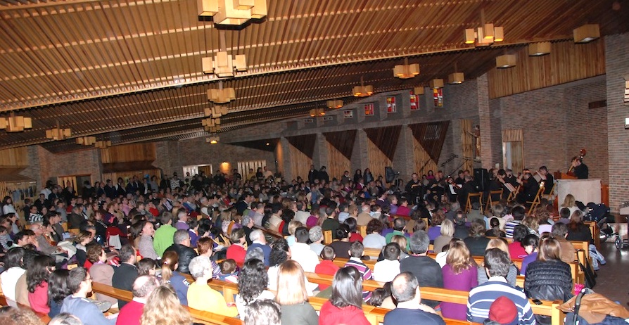 A rebosar. Así se encontraba en la tarde del sábado la Iglesia del colegio Claret. El motivo no era otro que el tercer concierto solidario a favor de un doble proyecto. Por un lado, este año, el dinero recaudado hará posible la construcción del sistema de recolección de agua lluvia e instalación de lavaderos comunitarios, en las comunidades de Majagual y los Atajos de Ecuador. Y por otro hará posible el abasteceimiento de agua potable y el fortalecimiento comunitario a la comunidad de el Porvenir, en Honduras.