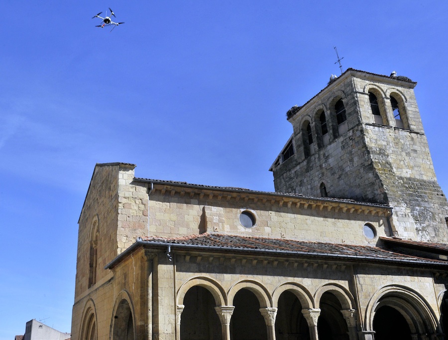 Por su parte, el técnico del Laboratorio de Fotogrametría Arquitectónica de la Universidad de Valladolid, José Martínez, explicó que el vehículo aéreo no tripulado (UAV) realizará, a través de una cámara de peso ligero, un conjunto de fotografías con un alto grado de resolución que ayuden al posterior estudio del estado de la parroquia. “Estamos trabajando con resoluciones que permiten distinguir objetos del orden de un centímetro”, señaló.