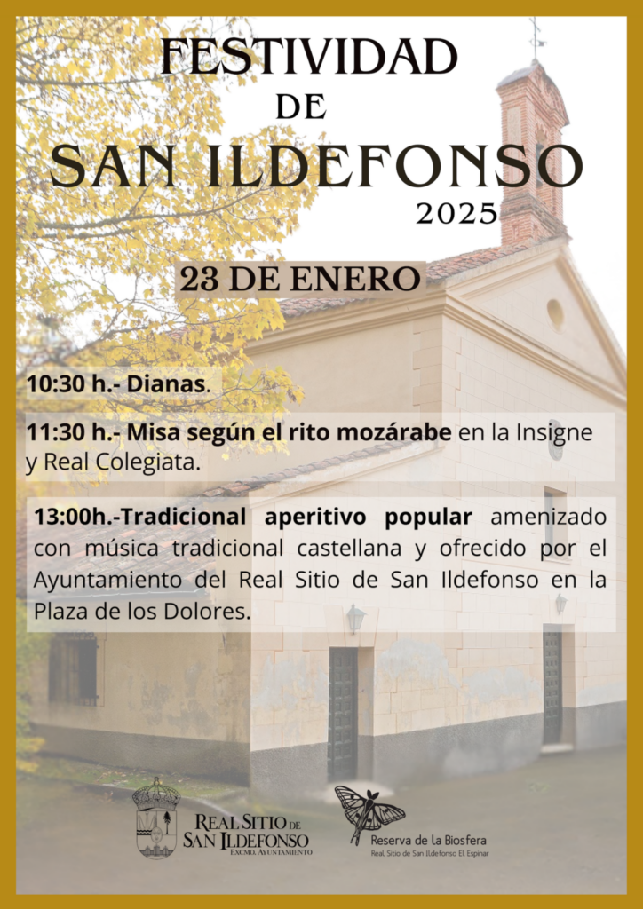 Así, los vecinos y vecinas del Real Sitio de San Ildefonso celebrarán la festividad de San Ildefonso, patrón que da nombre a este municipio segoviano, con diversos actos religiosos y lúdicos organizados por la Parroquia de Ntra. Sra. del Rosario y el Ayuntamiento del Real Sitio de San Ildefonso.