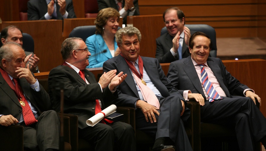 Los ex presidentes de la Junta, bromean con Jesús Posada, tras recibir la Medalla de las Cortes en 2008/ ICAL