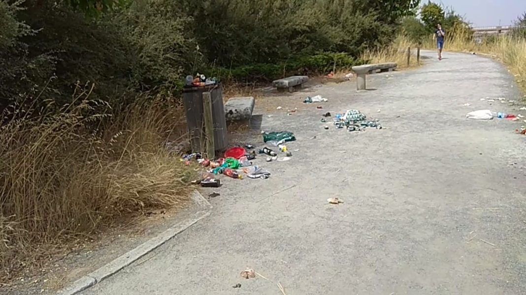 El estado del mencionado paseo peatonal es de: papeleras desaparecidas, rotas y/o volcadas y restos de residuos de todo tipo se esparcen sobre los entornos de los cuatro puntos de recogida que hay en el paseo y sobre parte de su recorrido, de unos dos Km, situación que perdura un día tras otro, poniendo en peligro real a todos los transeúntes que por allí tratan de pasear, andar o correr, además de dar una imagen deplorable de la zona a todos los que la visitan.