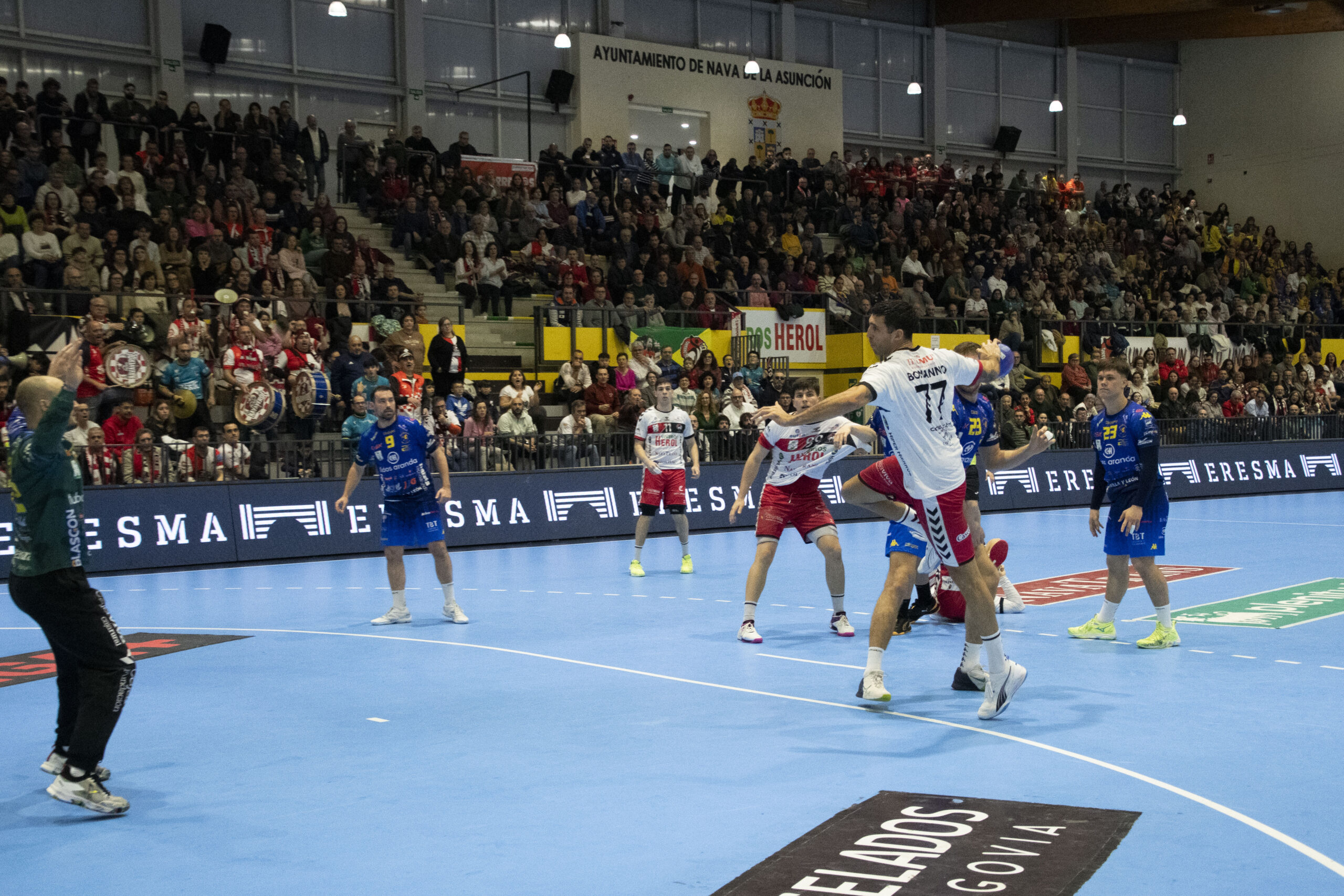Álvaro Senovilla apostó por el juego de siete, asumiendo los riesgos que esto puede tener, con Sasha encontrando los huecos para poner las tablas en el marcador. Pero, como decimos, el juego de siete tiene sus riesgos y una pérdida en la que los árbitros interpretaron que no era falta a Pablo Herranz, desencadenó en otro gol de Pau Guitart a puerta vacía que devolvía los dos de ventaja a favor de los visitantes (23-25) con menos de 6 minutos por jugar y con el entrenador navero solicitando tiempo muerto. Pudo aumentar la renta Villa de Aranda desde los siete metros, pero Mateus Buda le negó el gol a Víctor Enebral dándole una vida extra a su equipo para que Sasha disminuyera la diferencia a tan solo un tanto y, aunque en la primera oportunidad para empatar Dani Pérez se iba a encontrar con Pau Guitart, en la segunda el extremo no iba a fallar para empatar el encuentro y hacer creer a todo el feudo navero.