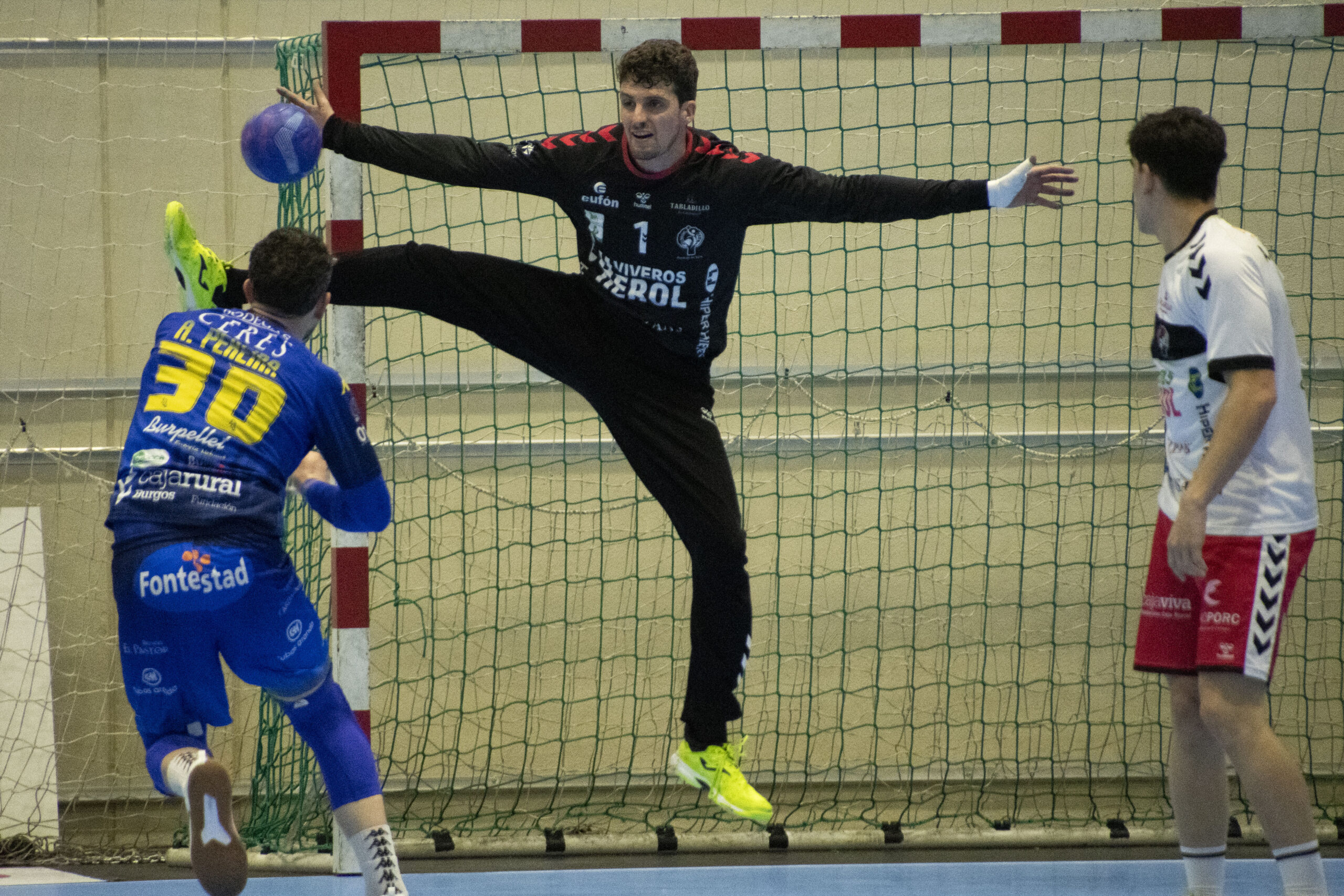 El primer acto del derbi comenzó algo loco, con ambos equipos queriendo imponer un ritmo alto que no acabó de ser fructífero para ninguno de los dos debido a las pérdidas que sufrían en la faceta ofensiva. Así, con los dos conjuntos materializando los ataques que sí tenían éxito a través de los pivotes, Pablo Herranz por parte del cuadro navero y Rogonovs para los amarillos (ayer de azul), nos movimos durante los primeros minutos en el empate y con pequeñas ventajas para uno y otro equipo que rápidamente se veían contrarrestadas. Pau Guitart y Luis de Vega también comenzaban a parar balones bajo palos y fue en el ecuador de esa primera mitad cuando Tubos Aranda Villa de Aranda conseguía abrir una pequeña brecha de dos goles en el marcador (7-9) que pudo ser alguno más porque el guardameta arandino cerró su portería, aunque Luis de Vega le iba a dar la réplica en el lado navero.