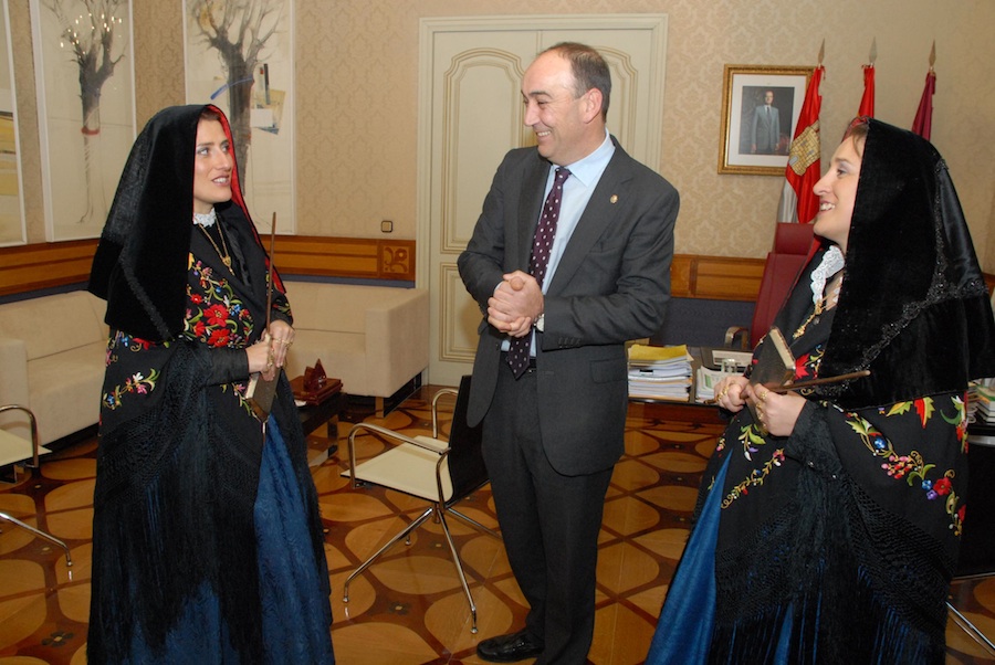Cumpliendo con la tradición las autoridades segovianas han recibido la visita de las alcaldesas de Zamarramala antes de que se celebre su fiesta entre los días 9 y 12 de febrero. Una vez más el alcalde de Segovia, Pedro Arahuetes, ha entregado el bastón de mando a las alcaldesas cuyo título ostentan este año las hermanas Alicia y Mª del Carmen Grande Velasco. Ataviadas con con el traje “de avisar” y junto a Arahuetes, las zamarriegas fueron recibidas en el consisitorio por el concejal de Servicios Sociales, Andrés Torquemada.