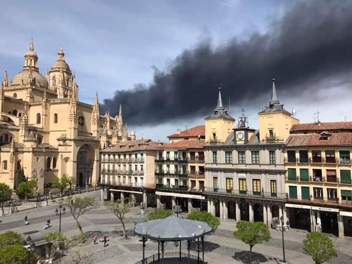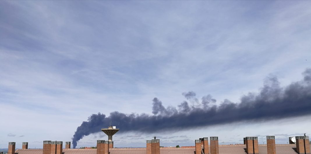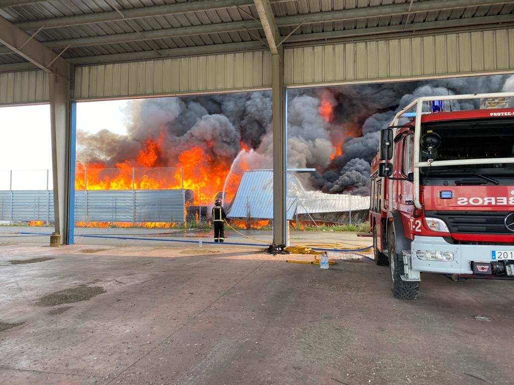 El incendio, producido durante esta mañana en la fábrica de plásticos FOSIMPE del Polígono Industrial Nicomedes García en Valverde ha dejado ver una gran columna de humo desde muchos puntos de la provincia.En directo la imagen era desoladora.