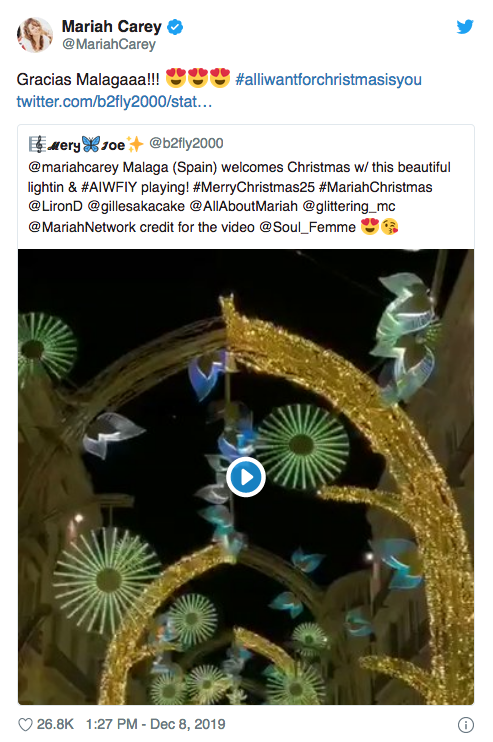Y a que no sabes.. ¡que Maria Carey agradeció que «All I want for Christmas is you» amenizara la iluminación de Navidad de la ciudad!