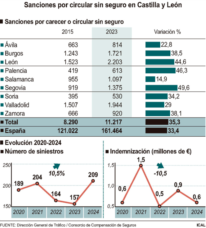 Lo cierto es que, lejos de descender, el número de conductores que circulan por las carreteras de Castilla y León sin el seguro obligatorio continúa aumentando.