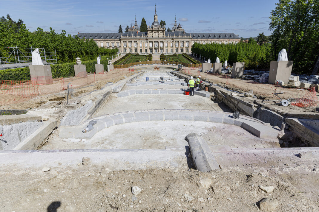 “Es una obra complicada”, asegura la arquitecta de Patrimonio Nacional María Corzo, aunque insiste en que “va bien”, con un 30 por ciento de ejecución y llegará a punto para cumplir con los plazos acordados que terminarán en junio de 2026. Con una inversión de seis millones de euros devolverán a La Cascada “un estado de conservación bueno” para que pueda volver a funcionar y sumarse al circuito de puesta en marcha de las fuentes ornamentales del Palacio de La Granja.