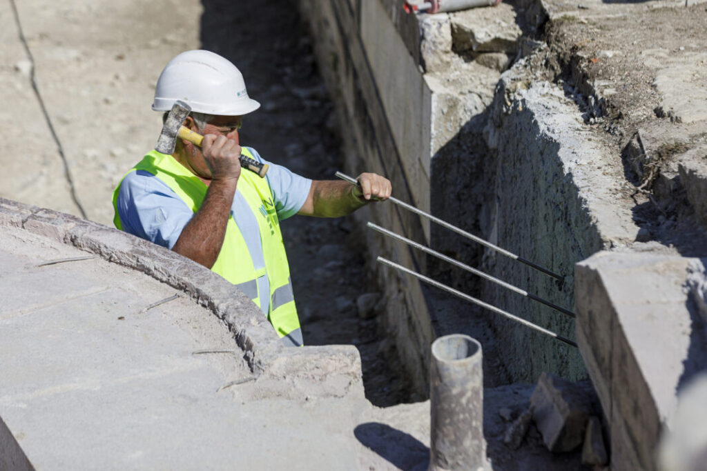 Ahora mismo se encuentran en la fase final de los desmontajes del revestimiento de mármoles y parte de la estructura y sillares, además de revisar el sistema hidráulico “haciendo reparaciones con soldadura de estaño”, y comenzaron con repasos puntuales “para chequear estructuras de plomo”, así como trabajos de limpieza y montaje de frentes.