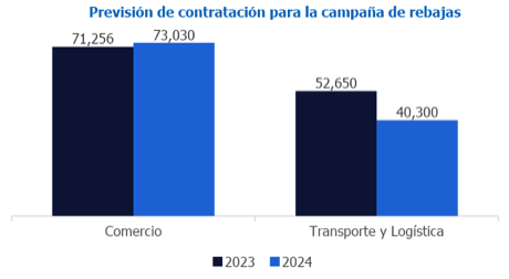 Por sectores, el comercio agrupará el 65% de la oferta total, con más de 73.000 vacantes en 2024 (+2,5% respecto al año anterior cuando se registraron cerca de 71.250). El transporte y la logística este año crearán más de 40.300 vacantes (-23,5% respecto a 2023 cuando se firmaron cerca de 52.650).