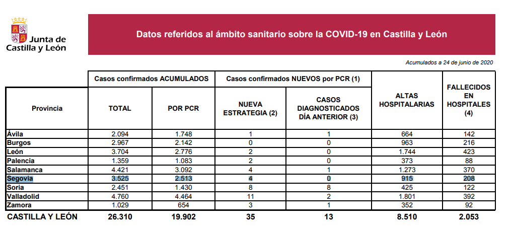 CASTILLA Y LEÓN REGISTRA ACTUALMENTE 26.310 CASOS DE COVID-19, DE LOS QUE 19.902 HAN SIDO CONFIRMADOS POR PCR
