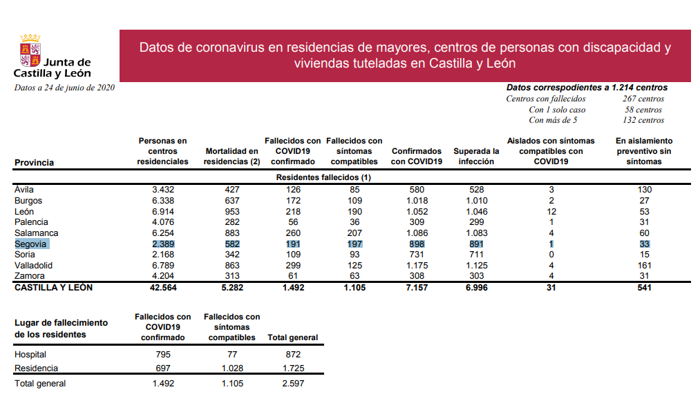 La Junta de Castilla y León reconoció al inicio de la pandemia que el número de fallecidos no es posible darlo con exactitud. Hasta el momento, la cifra de fallecidos facilitada por las autoridades es de 399.