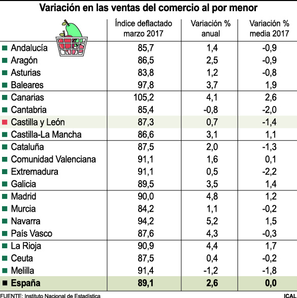 Las ventas del comercio minorista crecen un 0,7 % en Castilla y León