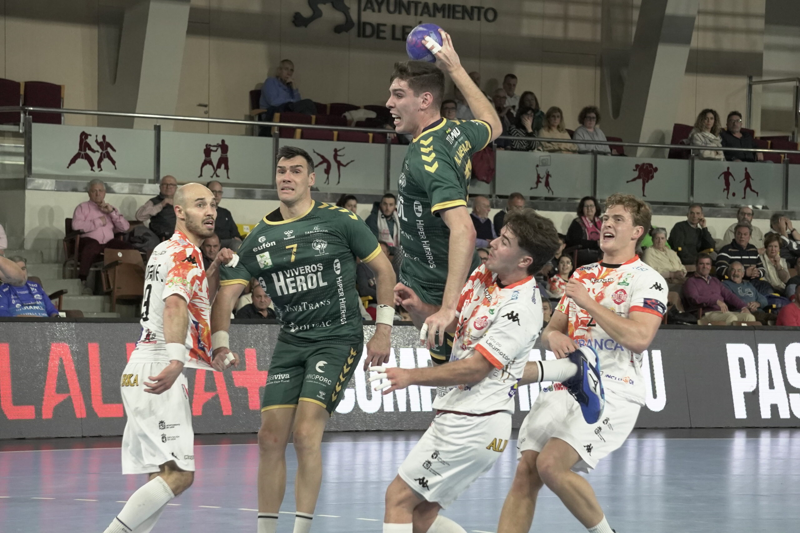 Pero casi en un abrir y cerrar de ojos Ademar León devolvía la ventaja a los tres goles con protagonismo ahora para Álvaro Pérez, su otro portero, que echaba el cerrojo a la portería. Pegó otro arreón Balonmano Nava para ponerse de nuevo a uno con muy buenos minutos de Laucha desde el extremo.