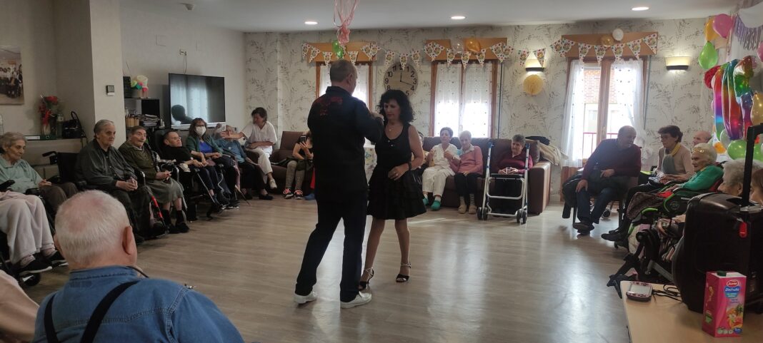 Entre los regalos que más disfrutó la residente, la exhibición de bailes de salón con la que le obsequiaron Mari Luz López, trabajadora del centro y Rafa, profesor de la escuela de bailes de ritmos latinos.