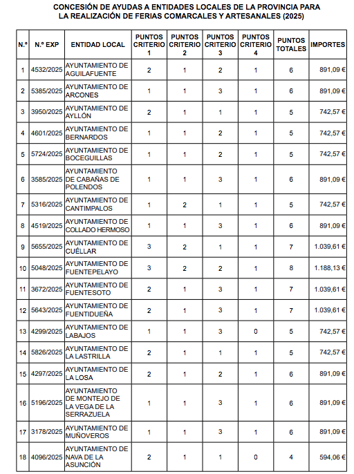 Los 35 ayuntamientos de Segovia con ayudas para ferias comarcales y artesanales