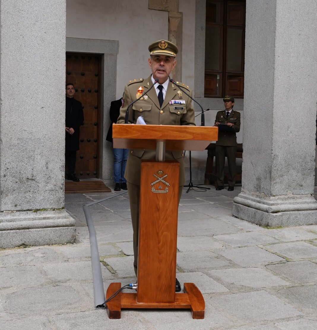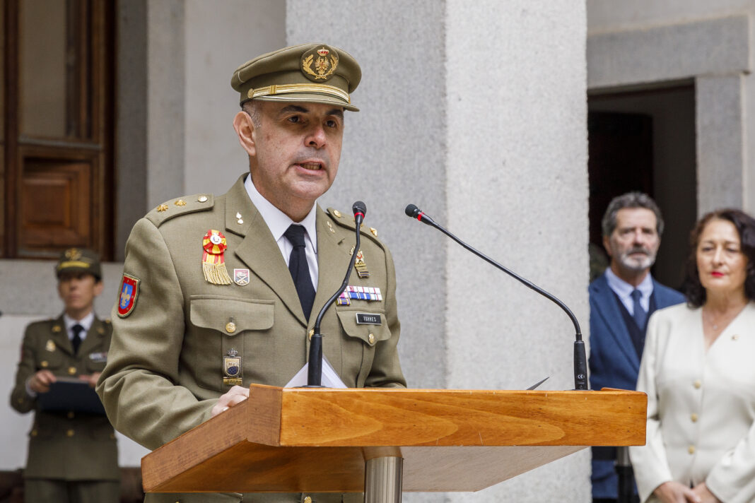 El Teniente coronel Torres, durante su discurso de inicio del curso en la Academia de Artillería de Segovia Img/Nacho Valverde en ICAL