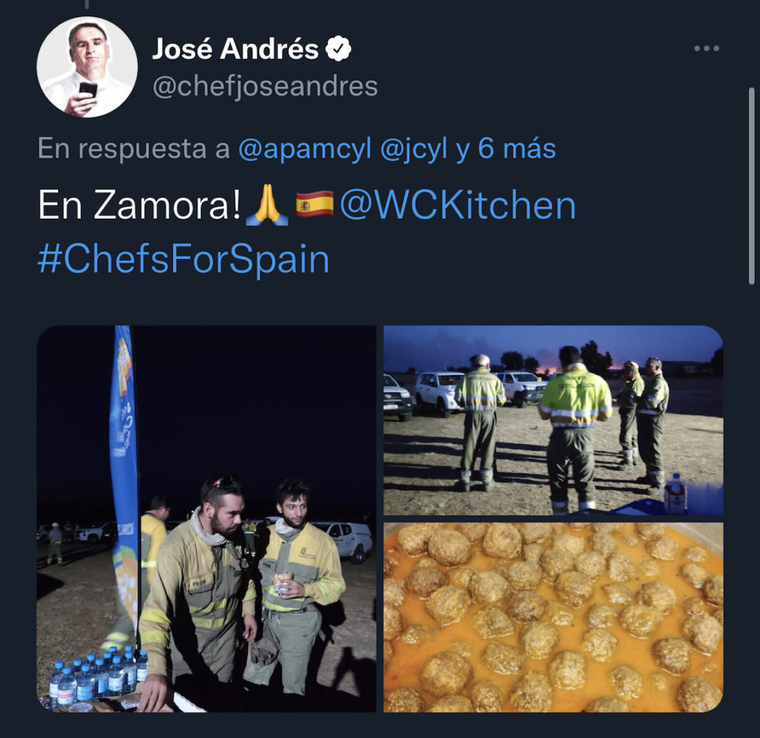 De esta manera la denuncia por parte de los equipos de extinción fue atendida por el chef, quien hizo llegar alimentos a través de personal de su ONG, gracias a los cuales, los trabajadores en el incendio de Losacio pudieron reponer fuerzas.
