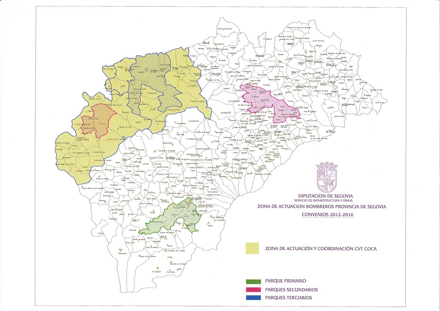 Para cooperar en la prestación de este servicio con los municipios de la zona de influencia de Segovia Capital se formalizó el pasado 1 de agosto de 2012 un convenio de colaboración entre la Diputación Provincial y el Ayuntamiento de Segovia para prestar el servicio de extinción de incendios en la provincia. Sin perjuicio de la actuación de bomberos de Segovia en toda la provincia, se ha establecido la coordinación con el resto de parques municipales o de zona, para así cubrir todos los pueblos de la geografía segoviana.