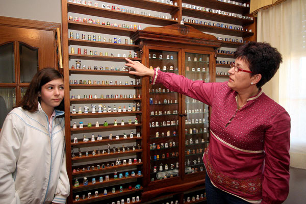 En su domicilio de Ortigosa del Monte (Segovia), Pilar de Frutos conserva sus dedales, perfectamente ordenados en una vitrina donde se exhiben convertidas en verdaderas obras de arte. La mayoría de ellos son elementos artesanales y los ha ido consiguiendo desde 1990, año en el que decidió coleccionarlos. Los tiene desde los más simples de metal con escaso valor artístico, hasta otros muy elaborados, raros y con elevado valor económico.