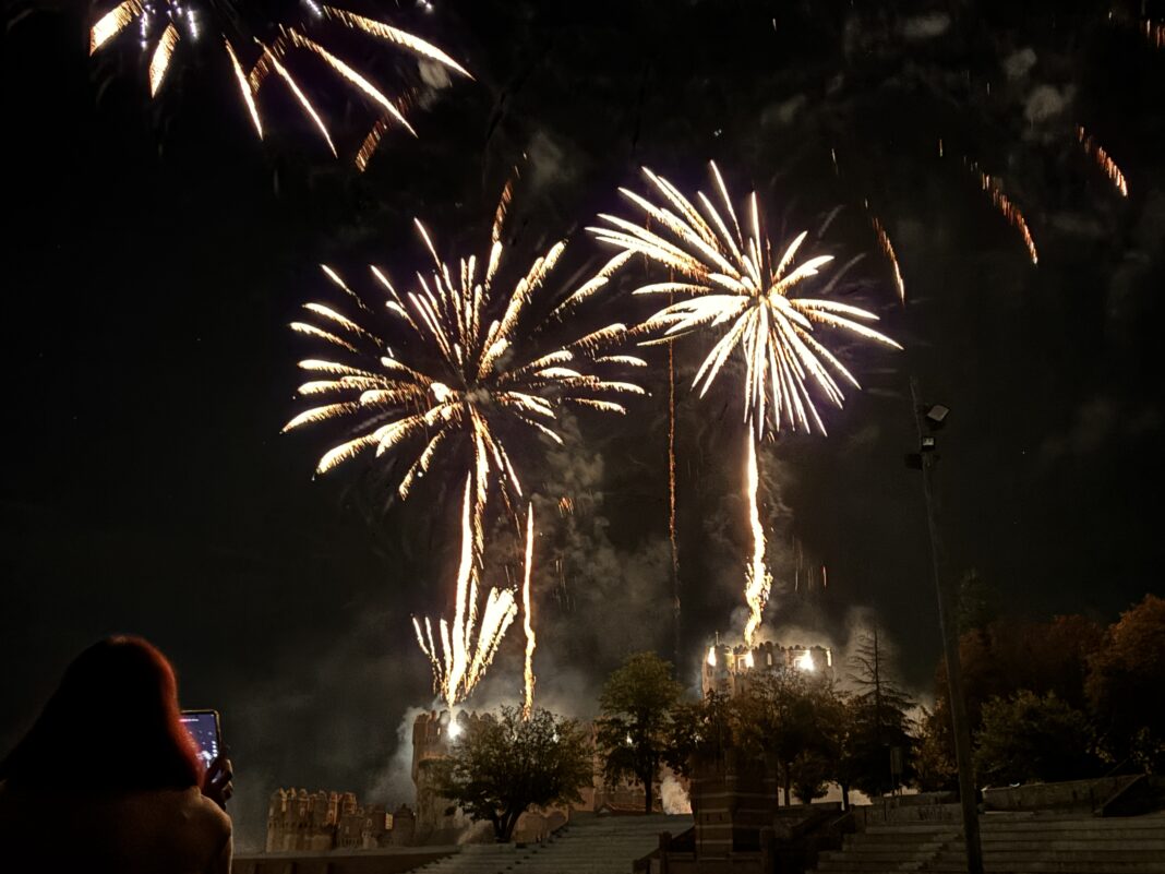 Los fuegos artificiales de Coca culminan con un incendio en el foso del Castillo