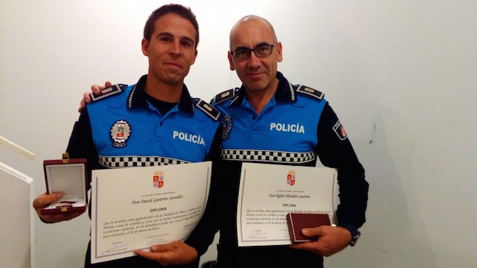 También fueron obsequiados con la Medalla de Plata D. Raúl Torres y D. Óscar Martín. Agentes del Cuerpo de Policía Local de Segovia, por su actuación en el mismo incendio del 28 de agosto en Segovia, en el que rescataron a un bombero y a un aciano.