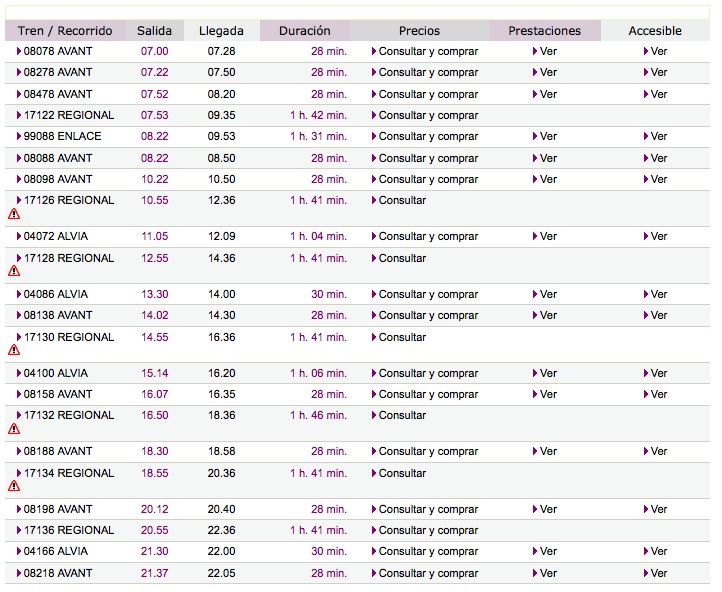 Para los trenes interurbanos, se garantizan unos servicios mínimos del 65 por ciento, por lo que de los 587 trenes afectados por la huelga circularán 382 y 205 serán cancelados. En este sentido, se eliminan todos los regionales Segovia-Madrid con una duración de 1:41 minutos, excepto el de las 7:53 horas y el de las 18:55 horas. Por lo tanto 10:55 horas, 12:55 horas, 14:55 horas, 16:50 horas y 18:55 horas, se verán eliminados con motivo de la huelga.