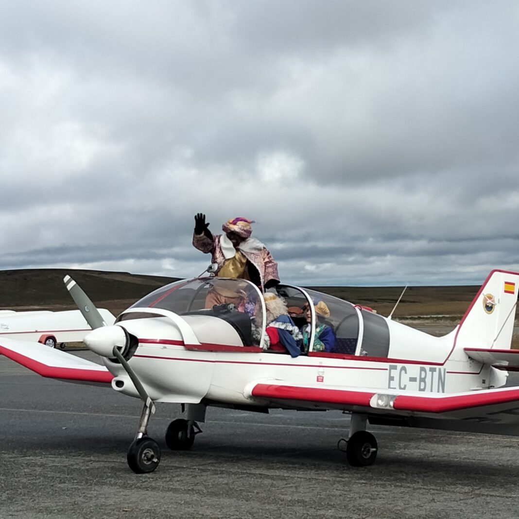 En esta ocasión Sus Majestades los Reyes Magos de Oriente han dejado aparcados sus camellos y han llegado a Segovia montados en una avioneta que ha aterrizado en Fuentemilanos.