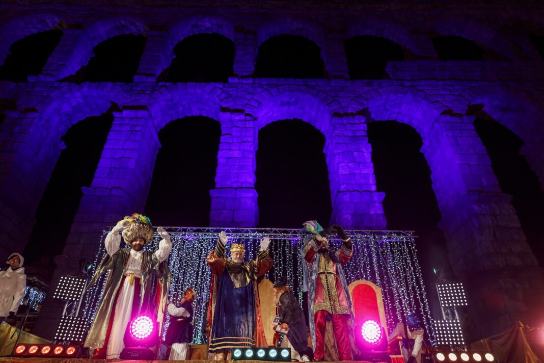 Los primeros presentes, oro, incienso y mirra, fueron depositados por los Reyes Magos en el Nacimiento situado a los pies del Alcázar. A partir de ese momento, en torno a las 19.30 horas, comenzó el recorrido, que se desarrolló por la Ronda de Juan II a pie, antes de que Sus Majestades subieran a las carrozas reales en la plaza Mayor. El desfile concluyó en el Azoguejo aproximadamente dos horas después, donde tuvo lugar la habitual recepción a los pies del Acueducto.