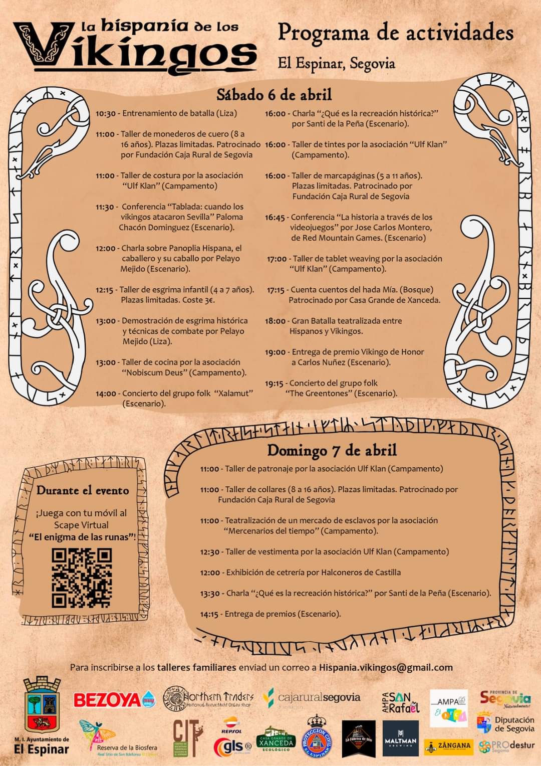 Todas las actividades son gratuitas, y se podrán descubrir curiosidades de la era vikinga a través del Scape Virtual “El enigma de las runas”, donde los visitantes con su móvil tendrán que ir realizando varias pruebas inmersos en el campamento vikingo.