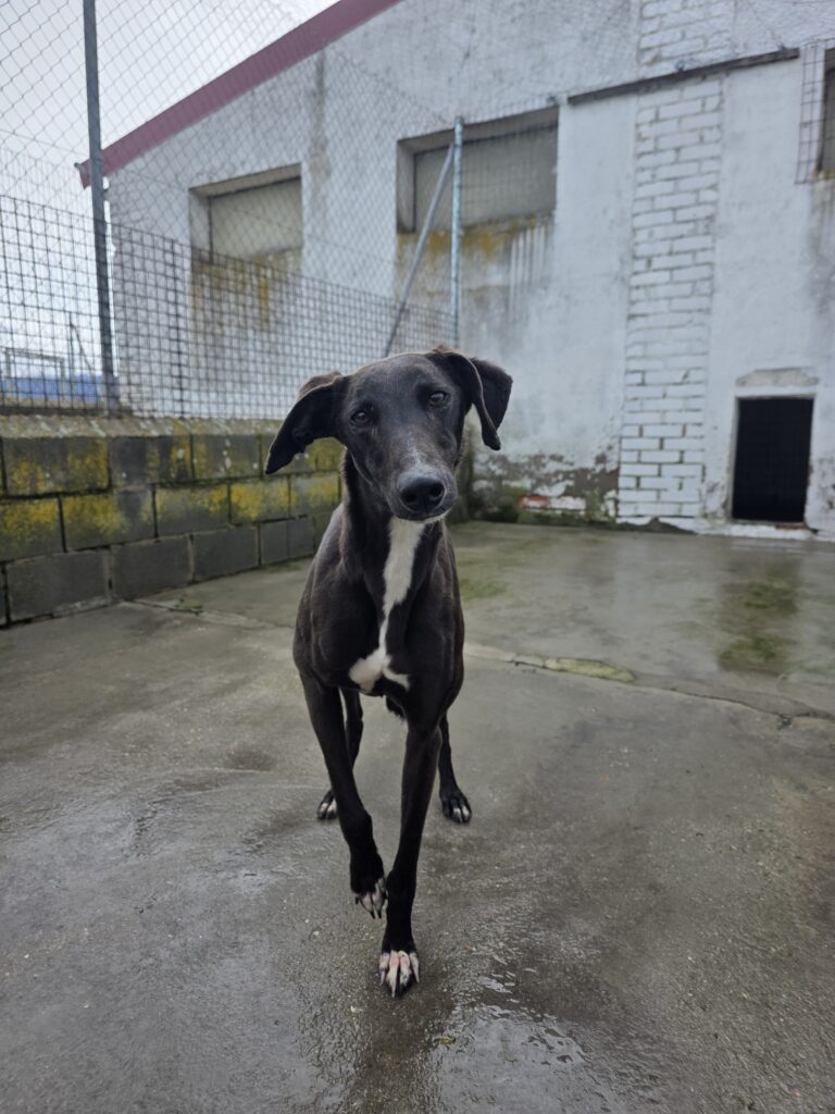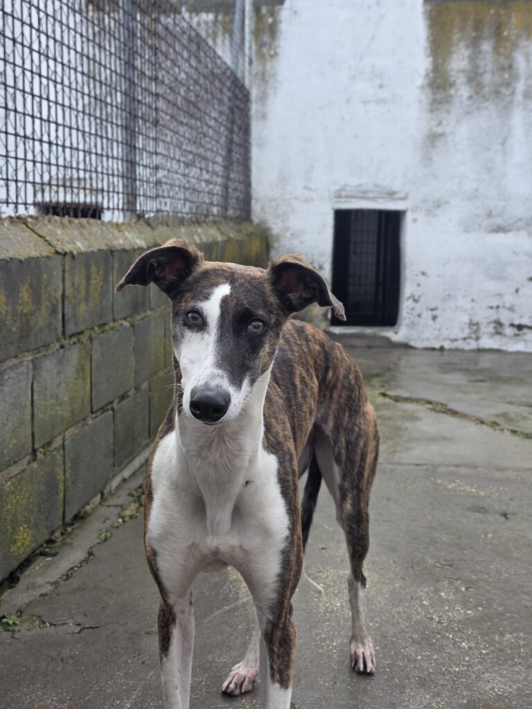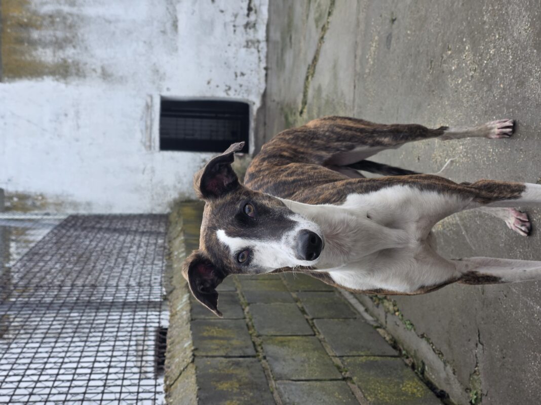 Con apenas año y medio, Mae es una galguita pequeña, extremadamente buena y tranquila. Su mirada lo dice todo: solo busca alguien en quien confiar.