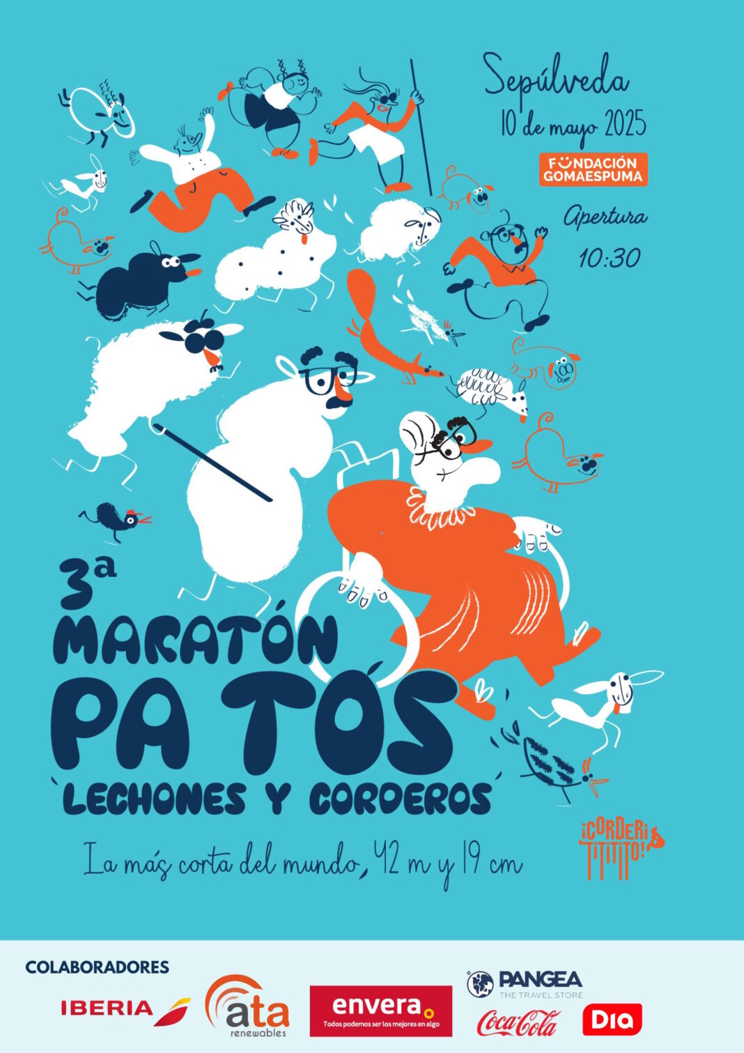 Por primera vez la maratón más corta del mundo –de tan solo 42 metros y 19 centímetros– “deja el asfalto” y se traslada al entorno rural para enclavarse dentro del festival de humor gratuito Corderitititito de Sepúlveda, en Segovia. Festival que, en su también tercera edición, rinde homenaje al dúo radiofónico Gomaespuma, integrado por Juan Luis Cano y Guillermo Fesser.