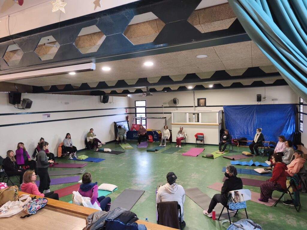 La sala de usos múltiples de Trescasas se llenó este fin de semana con motivo del taller “Cuerpo y Vibración”, una propuesta de exploración corporal y vocal organizada por la asociación Masamadre que reunió a una veintena de participantes en torno al movimiento, la respiración y el sonido.
