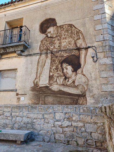 Este impresionante mural se puede ver en las conocidas como casas de los maestros de El Espinar. Pintado por Sergio Martín Muñoz, vecino del municipio, es un homenaje a los maestros y las maestras.