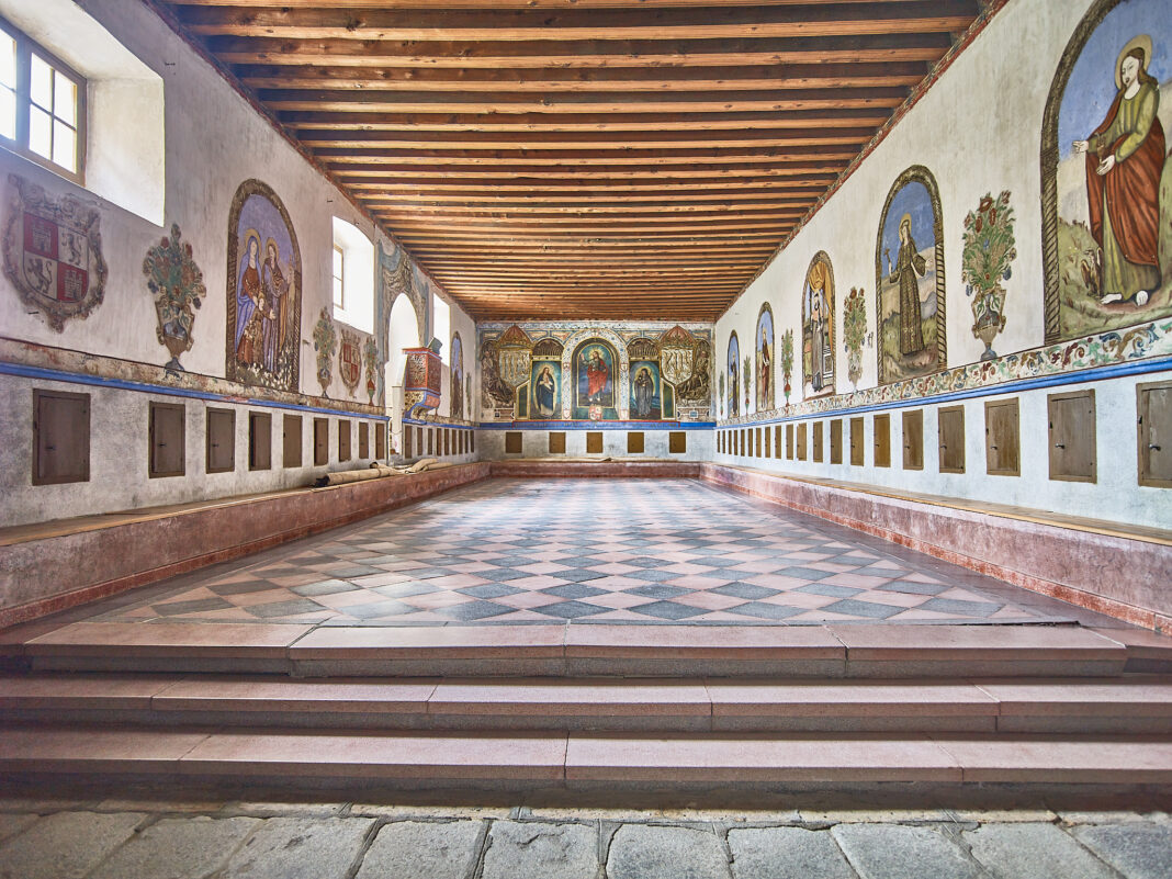 El monasterio alberga también valiosas obras de arte, como un artesonado mudéjar del siglo XV y un retablo flamenco que narra la Pasión de Jesucristo.