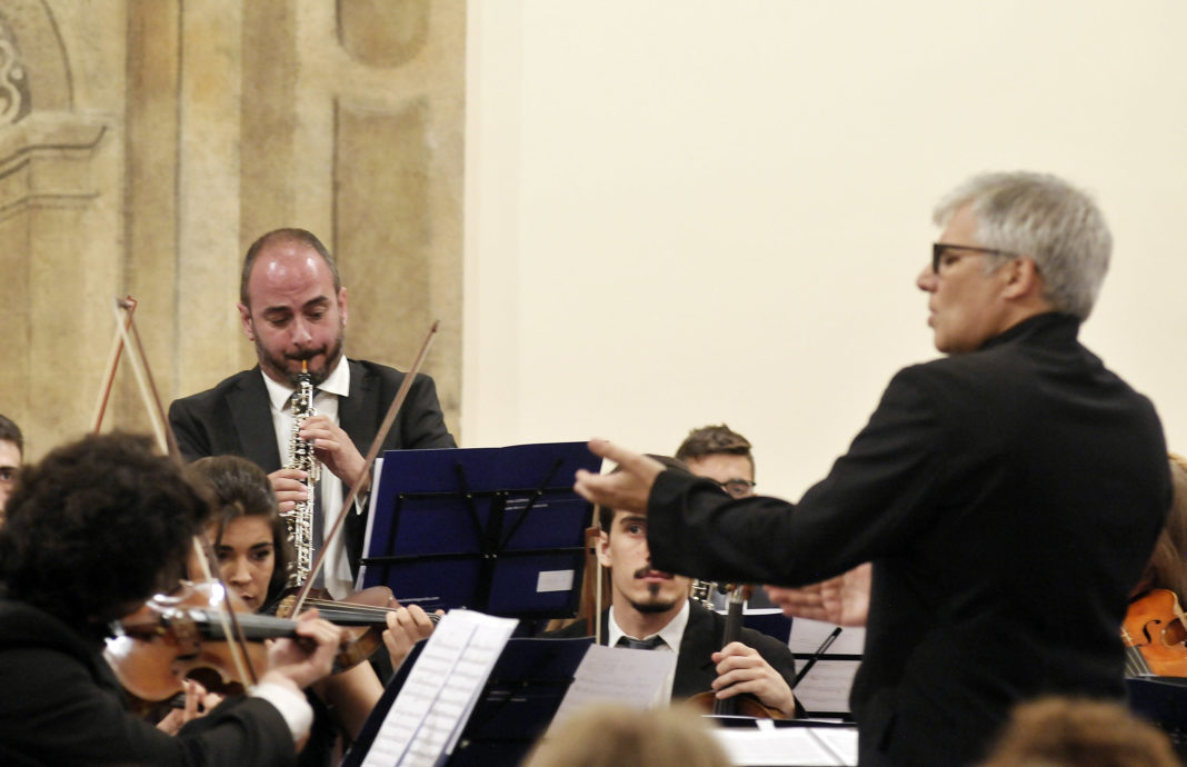 Los seis oboes, dos flautas, cuatros fagots, seis trompas, seis trompetas, dos percusiones, doce violines, cuatro violas, cuatro chelos y tres contrabajos que conforman Ensemble Barroco, fueron dirigidos con maestría por César Viana. Actualmente profesor en el Centro Superior Katarina Gurska, Viana ha dirigido a la Radio Philarmonie Hannover, la Orquesta Metropolitana de Lisboa o la Orquesta Classica da Madeira. César Viana ha repetido este año en La Granja. Ya estuvo en el Real Sitio en 2014, en otro memorable concierto, en el que también levantó al público asistente de sus asientos y cosechó una gran ovación.