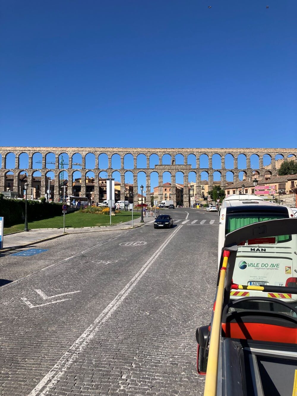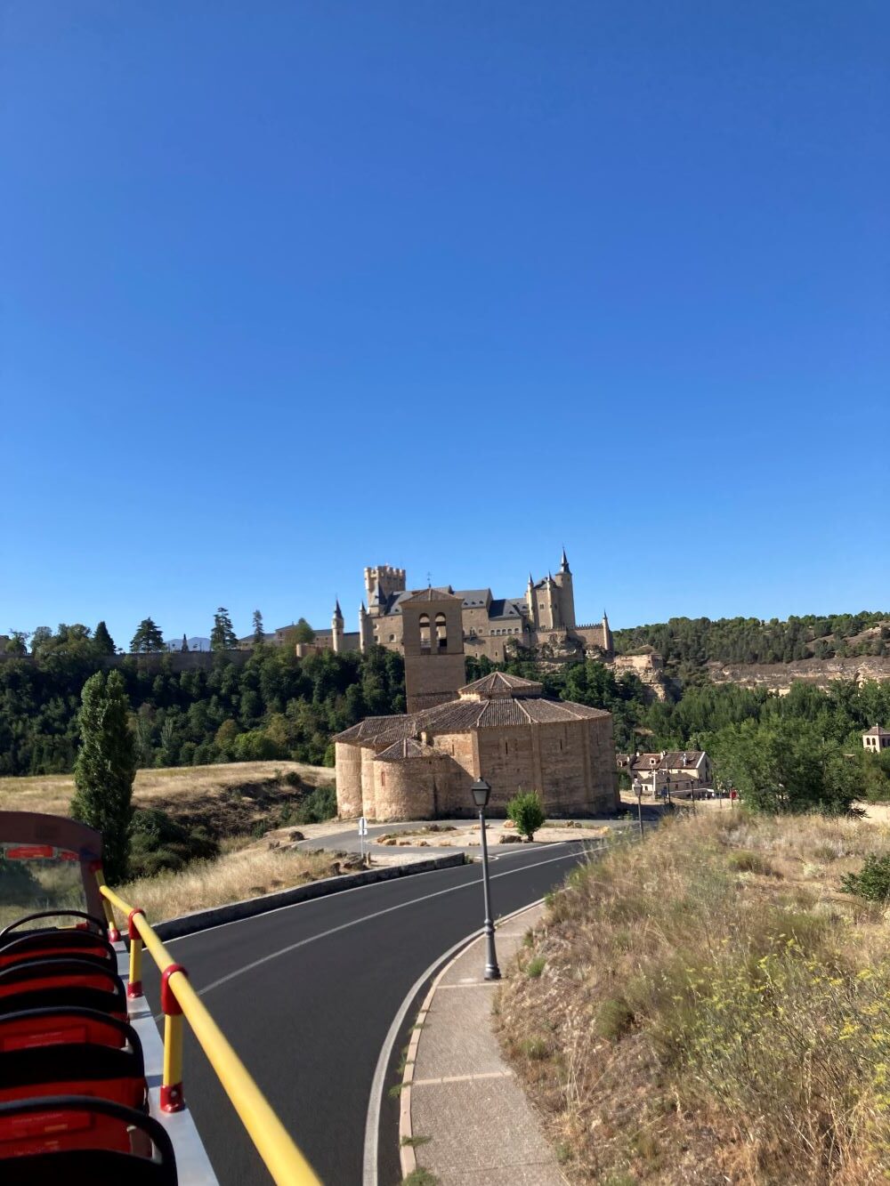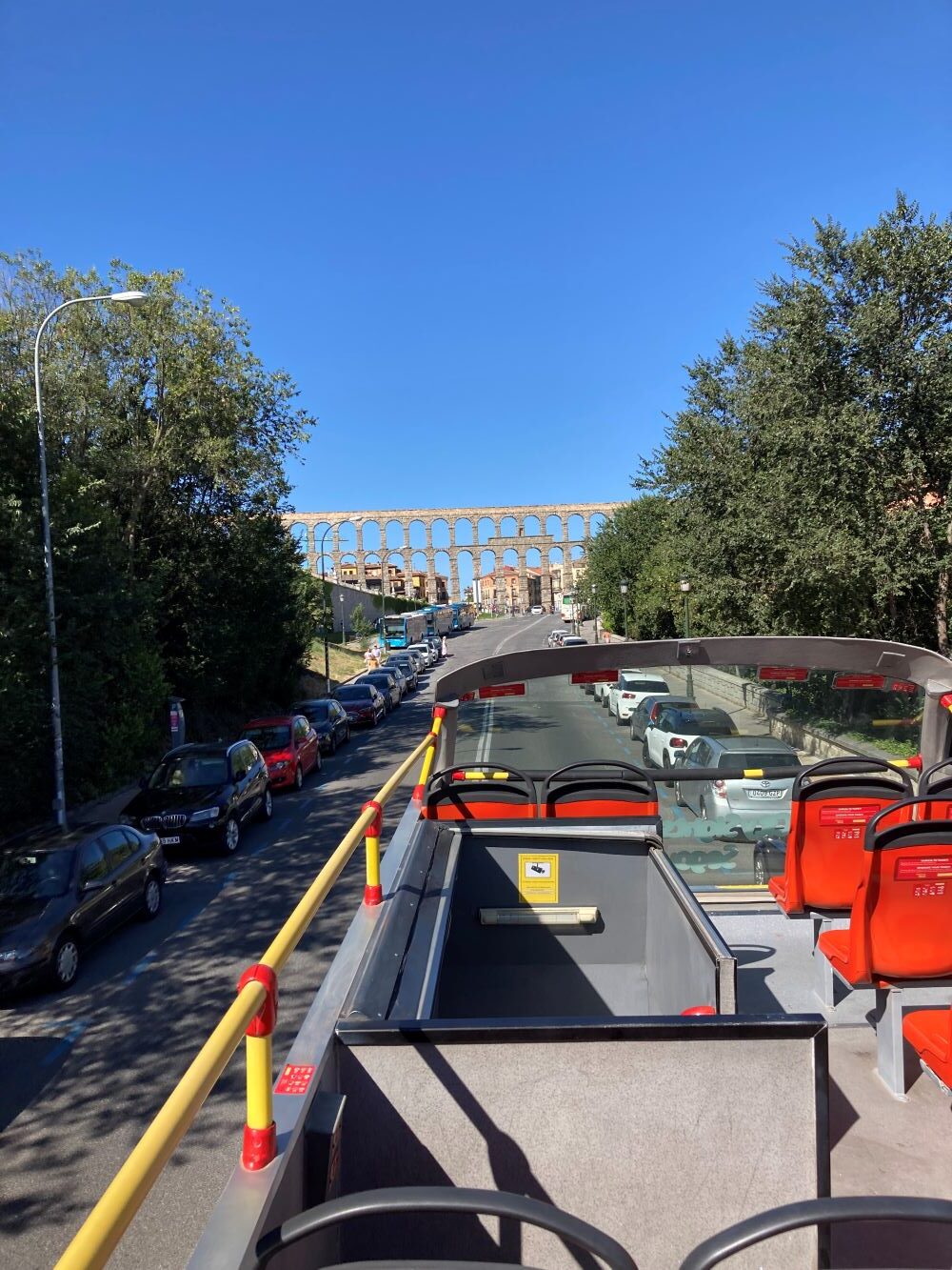 Continuamos el trayecto. El autobús llega al arco de la Fuencisla por donde pasa para continuar el trayecto hacia Zamarramala y poder ver la Catedral y el Alcázar, que desde esta perspectiva parecen estar juntos. Al bajar desde Zamarramala, queda a la izquierda la iglesia de la Veracruz, una de las iglesias más antiguas de Segovia, es precisamente en este cruce cuando el tamaño del vehículo impresiona a los conductores que esperan en el semáforo, teniendo incluso, en este primer trayecto, que retirarse uno de ellos para conseguir el acceso. Un monumental camino que hará las delicias de turistas y locales.