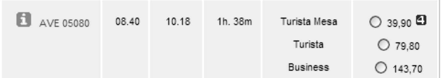 En la venta online los trenes con esta oferta disponible se identificarán con un número 4: