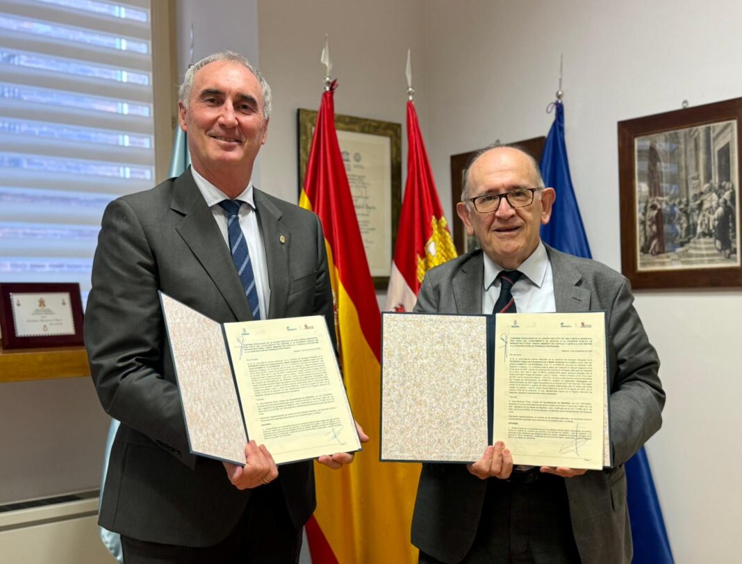 El consejero delegado de la Sociedad pública de Infraestructuras y Medio Ambiente (Somacyl), José Manuel Jiménez, y el alcalde de Segovia, José Mazarías, han rubricado el convenio para la cesión de la parcela municipal ubicada en el barrio de San Lorenzo, destinada a la construcción de 16 viviendas protegidas para jóvenes.