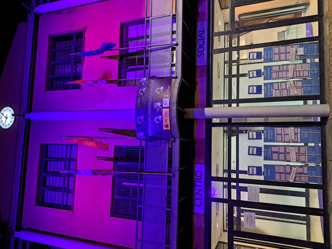 Asimismo, durante toda la jornada del 8M se colocarán carteles físicos y pancartas en los edificios municipales. También se iluminará la fachada del Ayuntamiento en color violeta.