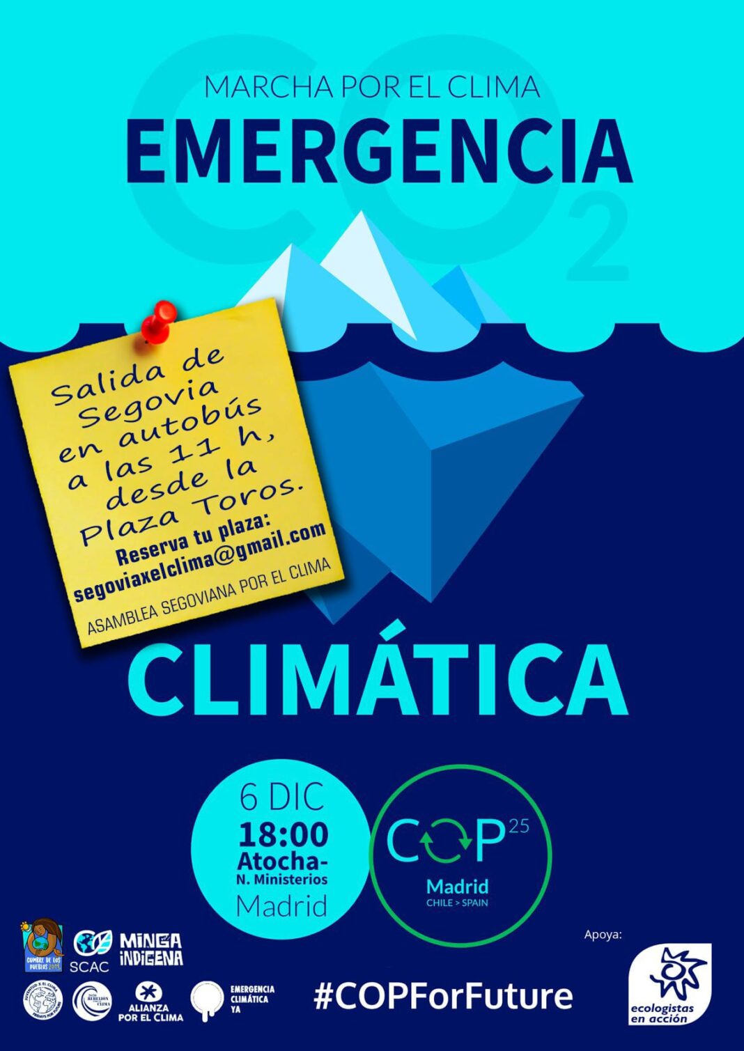Todas las personas interesadas en viajar en autobús o tren a Madrid para formar parte de la movilización pueden ponerse en contacto con segoviaxelclima@gmail.com.