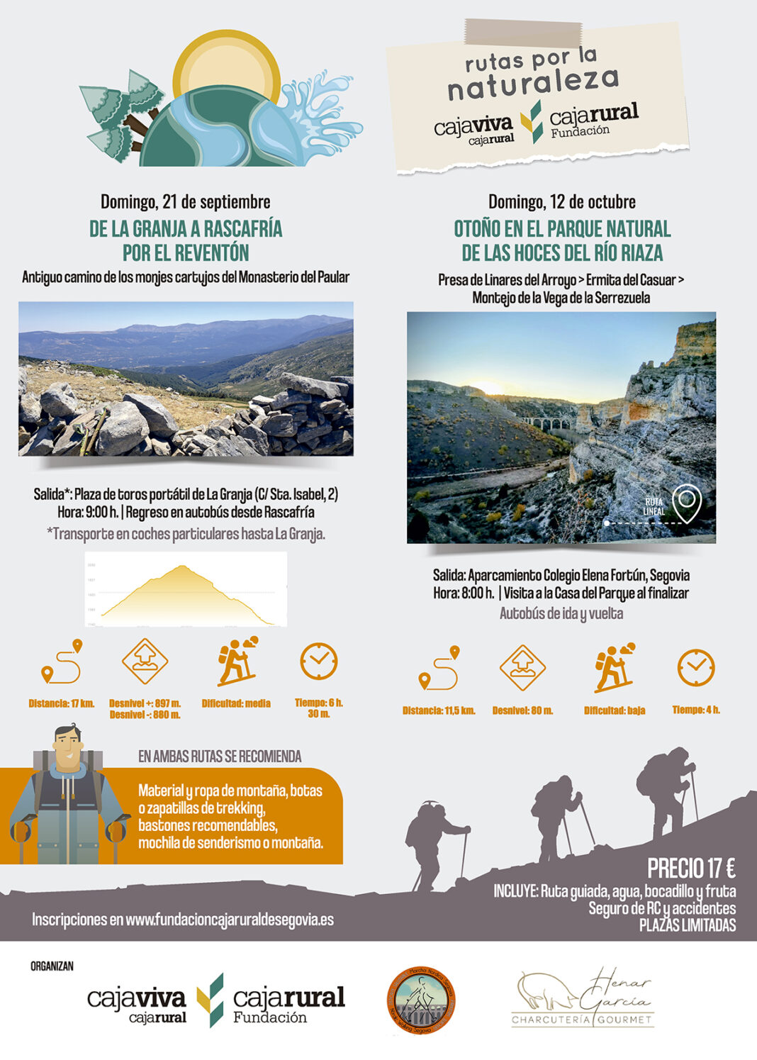 Los segovianos ya sabemos que la provincia cuenta con entornos naturales únicos. Sin embargo, a veces es necesario salir de ruta para recordarlo. Por ello, para conocer y disfrutar algunos de los entornos más bellos de Segovia la Fundación Caja Rural de Segovia, en colaboración con Nordic Walking, retoma este otoño su programa ‘Paseos por la Naturaleza’. Esta iniciativa cuenta con dos rutas guiadas por profesionales, combinando así la actividad física al aire libre con bellos paisajes.