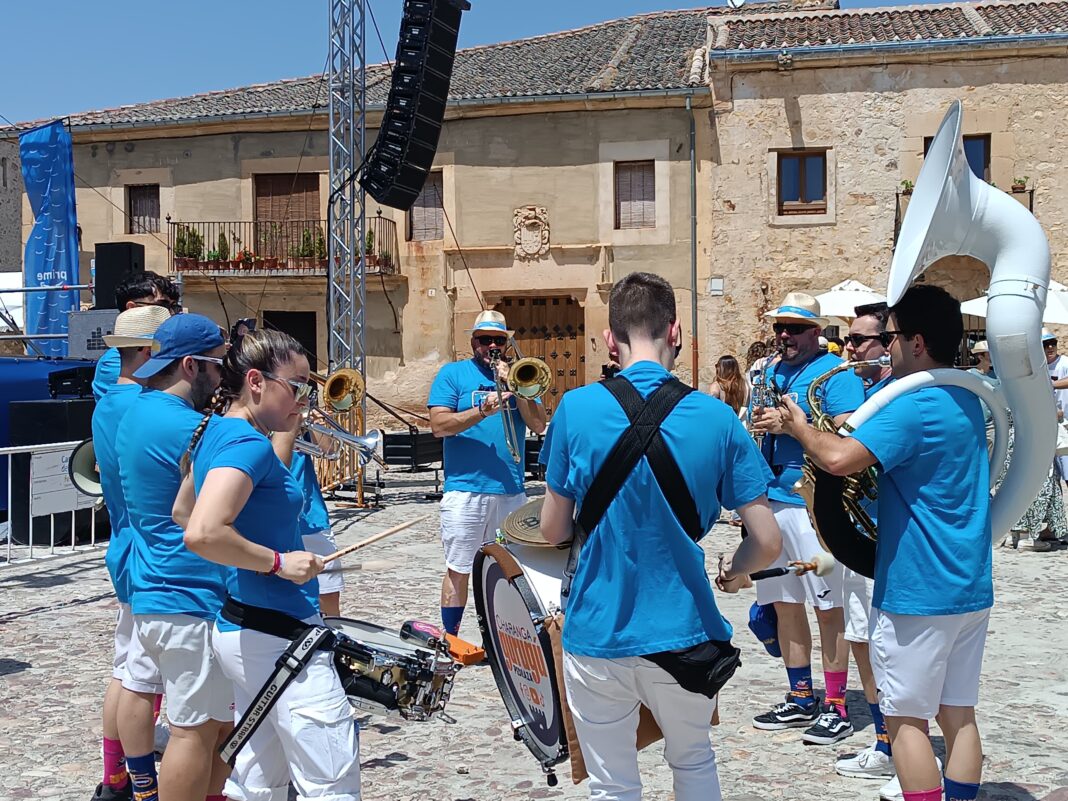 Mucho ambiente al inicio de la jornada con charangas, gente bailando y luciendo los típicos pañuelos de fiesta, sombreros y tote bags, que está regalando Amazon. Y muchos influencers disfrutando del evento en la villa segoviana.