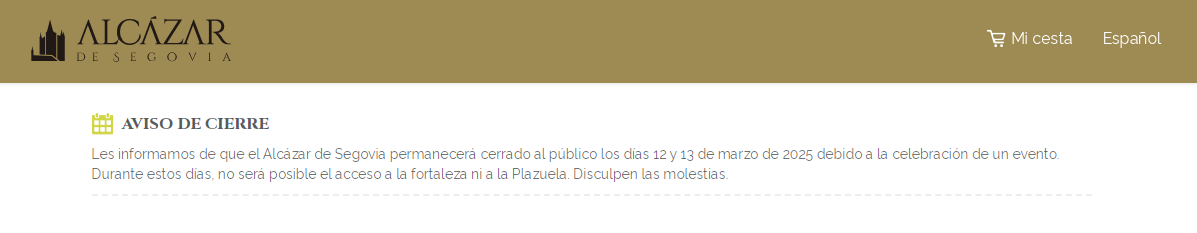 De hecho, el propio Alcázar de Segovia avisa en su página web de que permanecerá cerrado los días 12 y 13 de marzo, debido a la celebración de un evento.