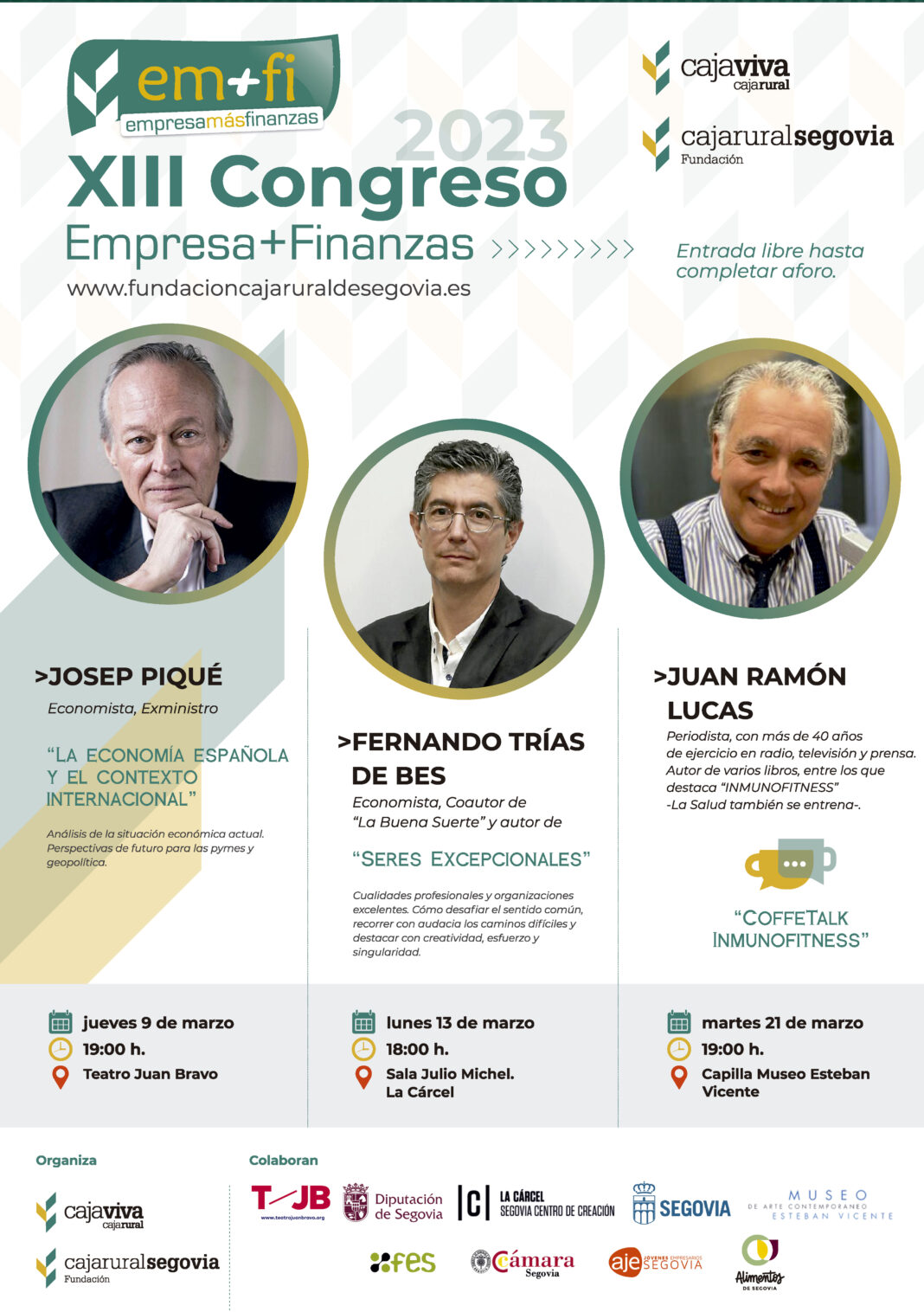 Josep Piqué, Trías de Bes y Lucas serán los protagonistas del XIII Congreso Empresas+Finanzas EMFI de la Fundación Caja Rural.