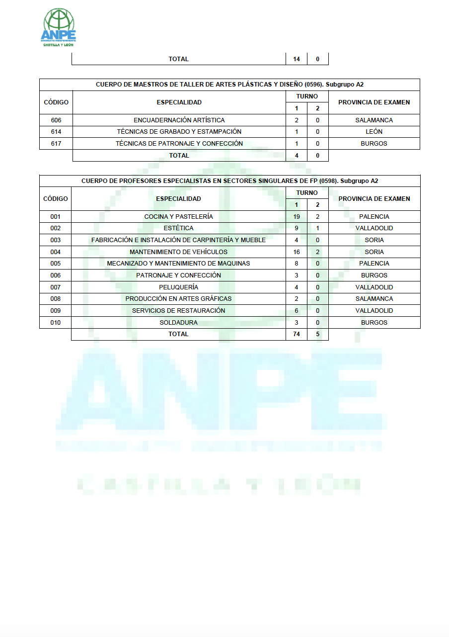 Las sedes para la realización de las pruebas se darán a conocer posteriormente, y este proceso se abrirá a finales de la próxima semana, según precisó a los sindicatos CSIF, STECYL-i, ANPE, CCOO y UGT-SP, que son los que están sentados en la Mesa Sectorial.