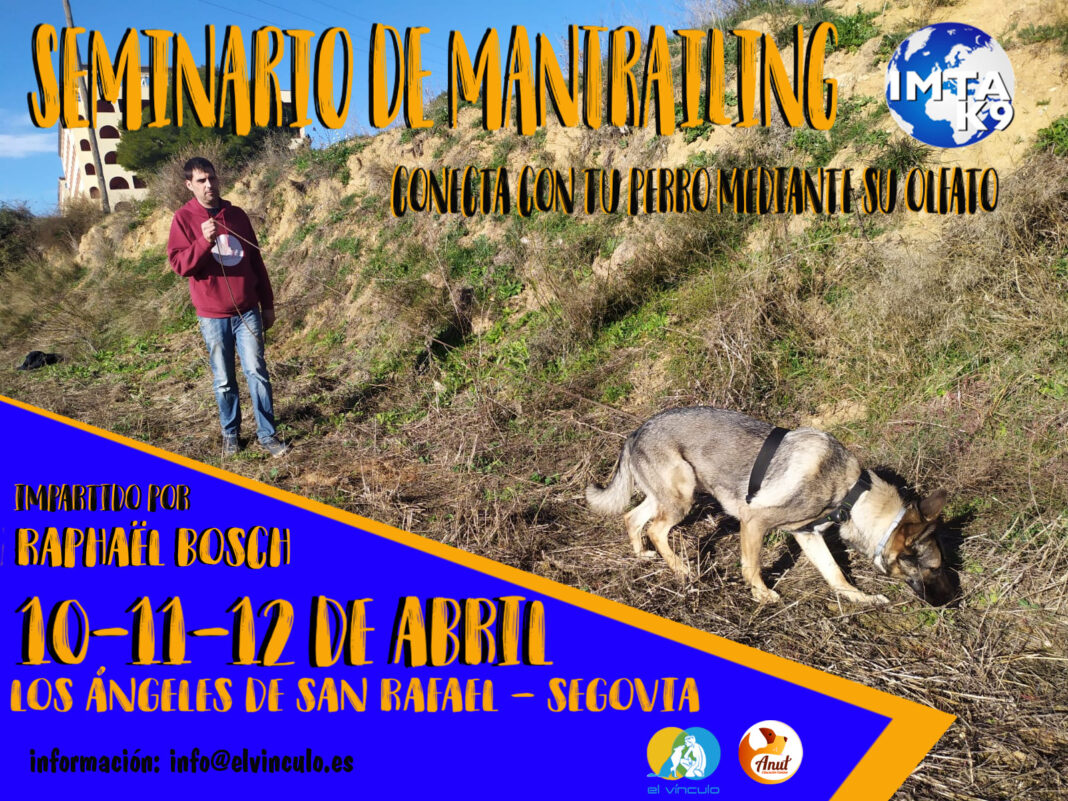 Los próximos 10, 11 y 12 de Abril Anut Educación Canina en Segovia y El Vínculo Educación y Activadades Caninas realizarán el I seminario de mantrailing en la provincia de Segovia, concretamente en la localidad de Los Ángeles de San Rafael.