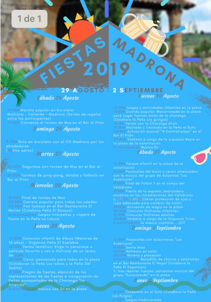 Madrona. Fiestas en honor al Santo Cristo de la Salud del 29 de agosto al 2 de septiembre.
