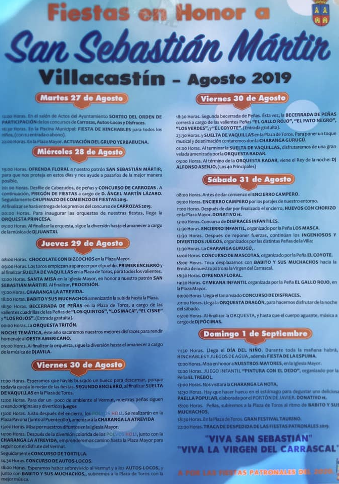 Fiestas de Villacastín, en honor a San Sebastián Mártir del 27 de agosto al 1 de septiembre.