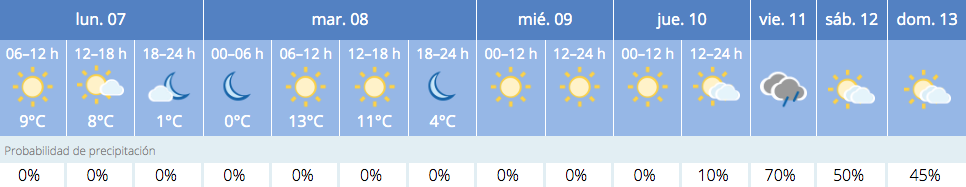 Este es el pronóstico de la AEMET (Agencia Estatal de Meteorología) para estos días.